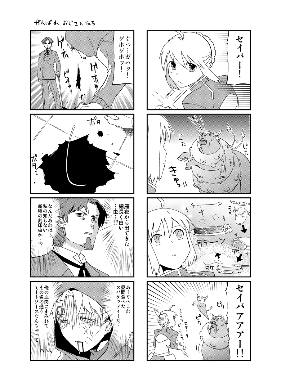 ということで3話見たので4こま漫画です。ウェイバーの令呪はアレに似てるような気がします